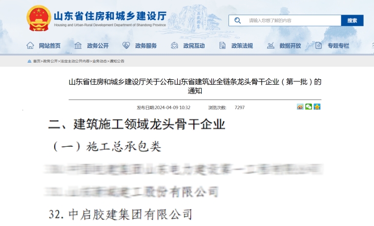 4月9日,山東省住房和城鄉(xiāng)建設廳公布了山東省建筑業(yè)全鏈條龍頭骨干企業(yè)(第一批)名單,我公司在施工總承包和外出施工兩類建筑施工領(lǐng)域均榮獲“山東省建筑業(yè)全鏈條龍頭骨干企業(yè)”稱號。