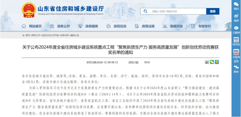 12月6日,山東省住房和城鄉(xiāng)建設(shè)廳官網(wǎng)公布了2024年度全省住房城鄉(xiāng)建設(shè)系統(tǒng)重點工程“聚焦新質(zhì)生產(chǎn)力 服務(wù)高質(zhì)量發(fā)展”創(chuàng)新創(chuàng)優(yōu)勞動競賽獲獎名單,中啟膠建集團(tuán)有限公司榮獲“優(yōu)勝集體”稱號,青島市市民健康中心二期市公共衛(wèi)生臨床中心項目部和青島空港綜合保稅商品展示交易中心項目(一期)1#-5#樓及地下建筑工程項目部被評為“優(yōu)勝項目部”稱號。