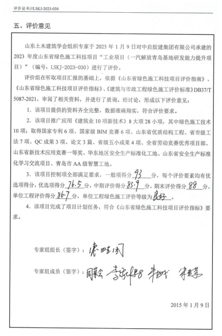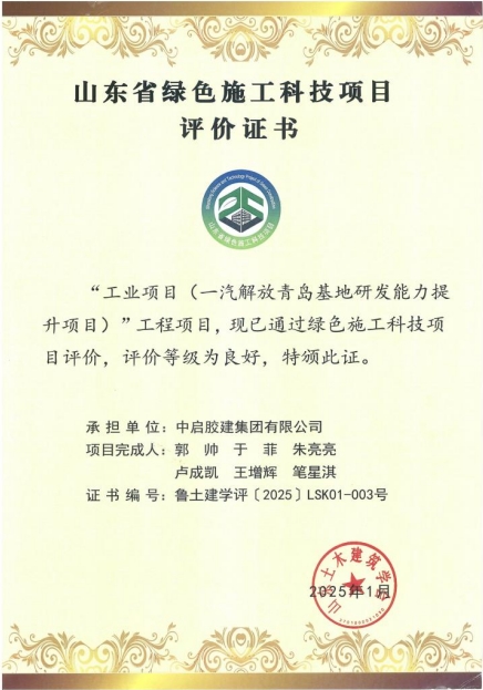 近日,山東土木建筑學(xué)會(huì)發(fā)布《關(guān)于公布通過驗(yàn)收評(píng)價(jià)的山東省綠色施工科技項(xiàng)目的通知》,中啟膠建集團(tuán)承建的工業(yè)項(xiàng)目(一汽解放青島基地研發(fā)能力提升項(xiàng)目)順利通過山東省綠色施工科技項(xiàng)目驗(yàn)收評(píng)價(jià)。