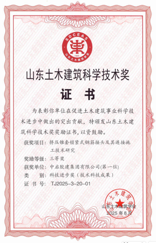 近日,山東土木建筑學(xué)會在濟南舉辦了2025年度山東土木建筑科學(xué)技術(shù)獎授予儀式。公司繼2022年首獲山東土木建筑科學(xué)技術(shù)獎(科技進步獎)以來,再接再厲,再次榮獲3項山東土木建筑科學(xué)技術(shù)獎(科技進步獎-技術(shù)科技成果),其中二等獎1項,三等獎2項,彰顯了在行業(yè)內(nèi)的研發(fā)實力與應(yīng)用優(yōu)勢,技術(shù)創(chuàng)新水平再次獲得權(quán)威認可。