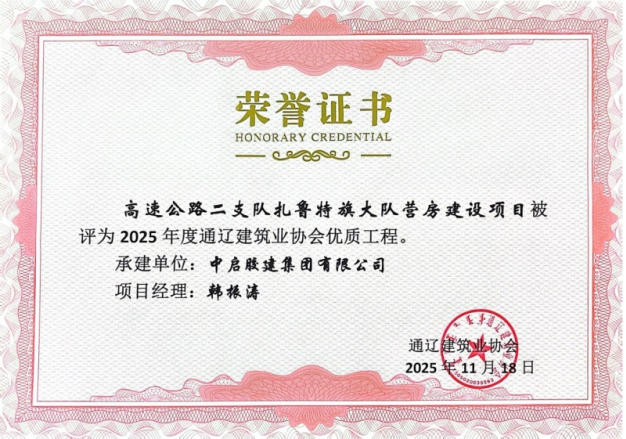 近日,建筑二公司再傳捷報!其承建的通遼市高速二支隊扎魯特旗大隊營房建設(shè)項目一舉榮獲“通遼市優(yōu)質(zhì)工程”獎。